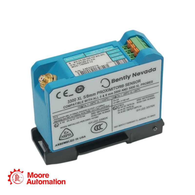 The 330380-90-00 is a 3300 XL 16mm High Temperature Proximitor Sensor. It is the signal conditioning component of the 3300 High Temperature Proximity System (HTPS). This sensor is designed to be used with a 3300 XL HTPS probe and matched extension cable to measure vibration, thrust position, and differential expansion inside the hot sections of gas and steam turbines and other rotating machinery where conventional proximity probes would be damaged by extreme heat. |