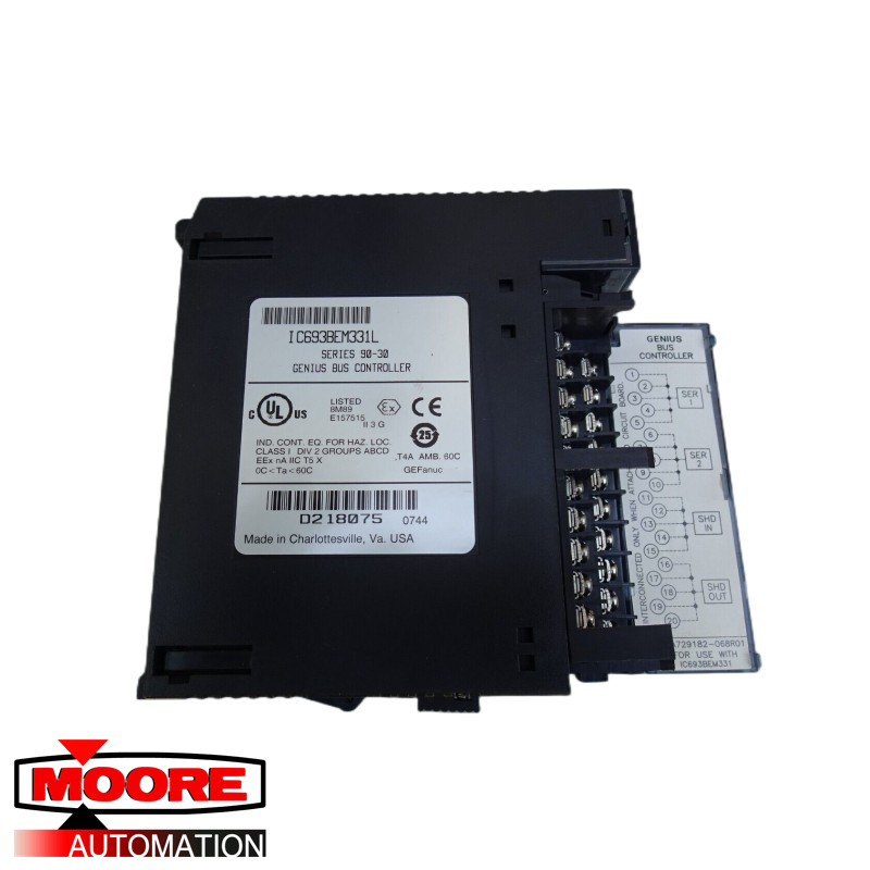 De Serie 90-30 Genius Bus Controller (GBC), catalogusnummer IC693BEM331, biedt de interface tussen een Serie 90-30 PLC en een Genius I/O seriële bus. De GBC ontvangt en verzendt besturingsgegevens van maximaal 128 bytes voor maximaal 31 apparaten op de Genius I/O-bus. Een Genius BusController kan dienen: