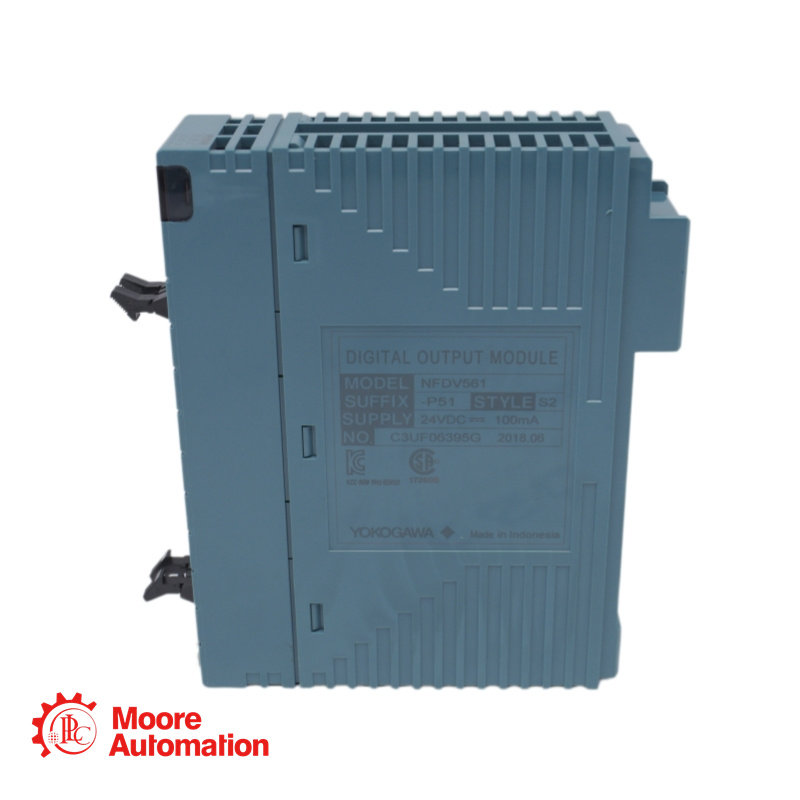 The NFDV561-P50 is a digital output module that outputs 64 channels of transistor contact signals. It provides ON/OFF status output functionality and supports output fallback actions (HOLD, OFF, or NO). The module is designed for installation in STARDOM FCN autonomous controller systems and requires an external field power supply (24 V DC).